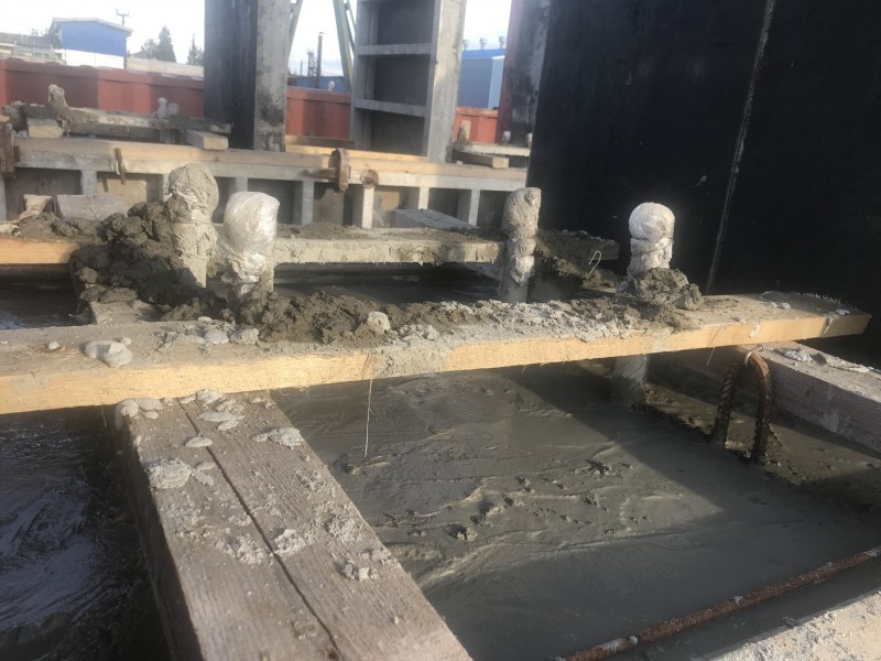 Производим лабораторный подбор, испытания образцов песка и гравия из карьеров расположенных рядом с объектом, производим бетон, укладываем бетон, делаем лабораторные испытания образцов бетона.