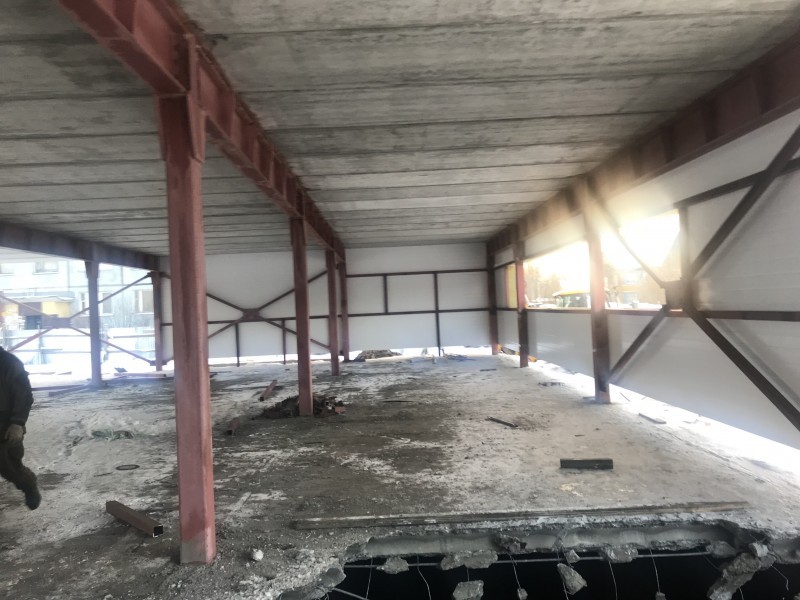 В течение четырех месяцев построен торговый центр на улице октябрьская, применялся монолитный бетон, металлоконструкции, трехслойные с-панели, пвх мембрана.